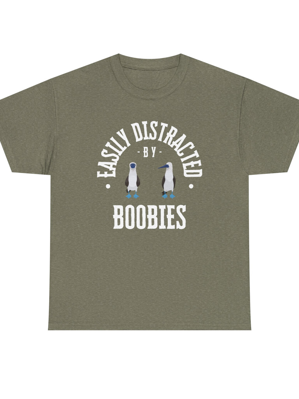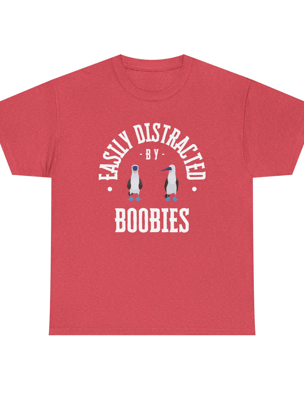 Easily Distracted by Boobies Adult Humor Unisex Heavy Cotton Tee for Bird Lovers