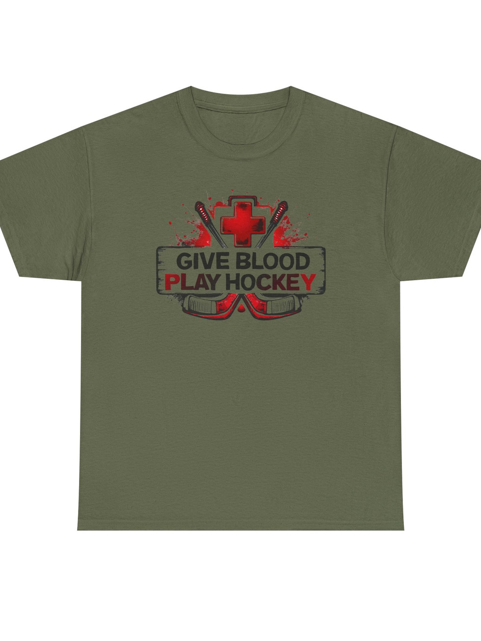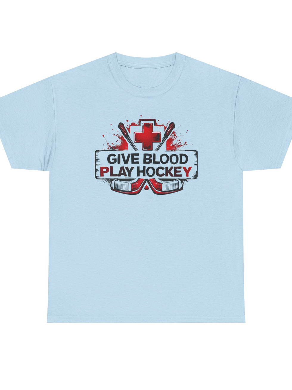 Give Blood, Play Hockey Funny Sports Unisex Heavy Cotton Tee