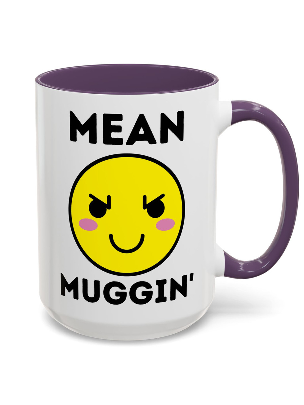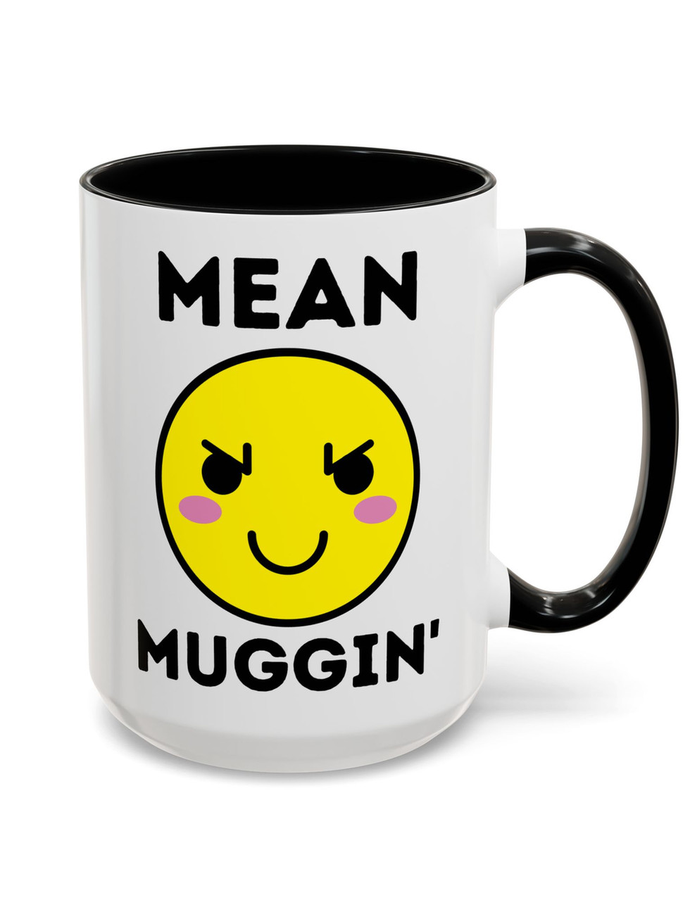 Mean Muggin' Funny Emoji MultiColor Accent 15 Oz Coffee Mug