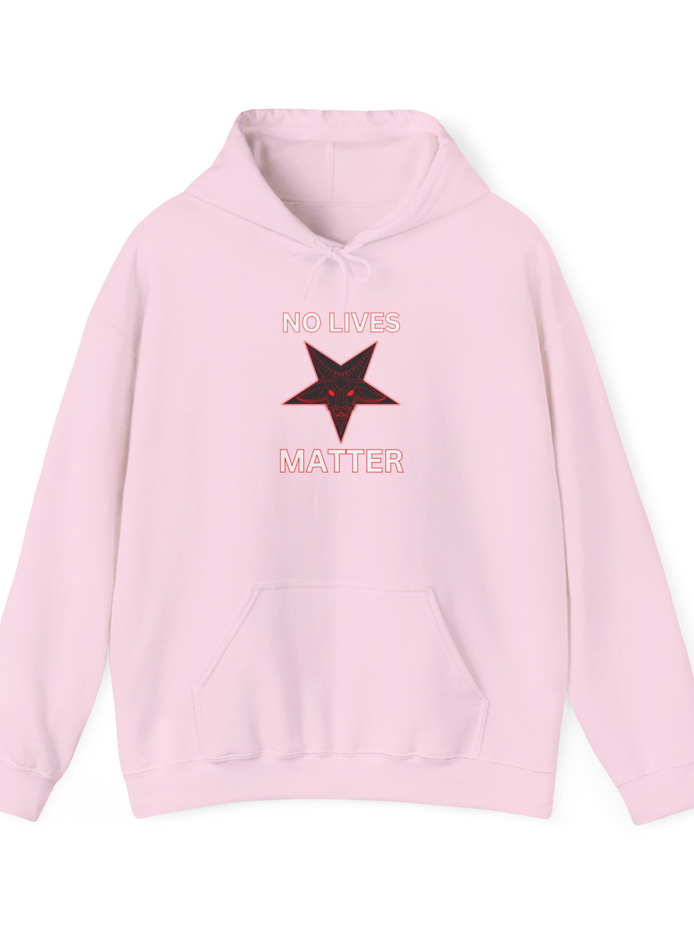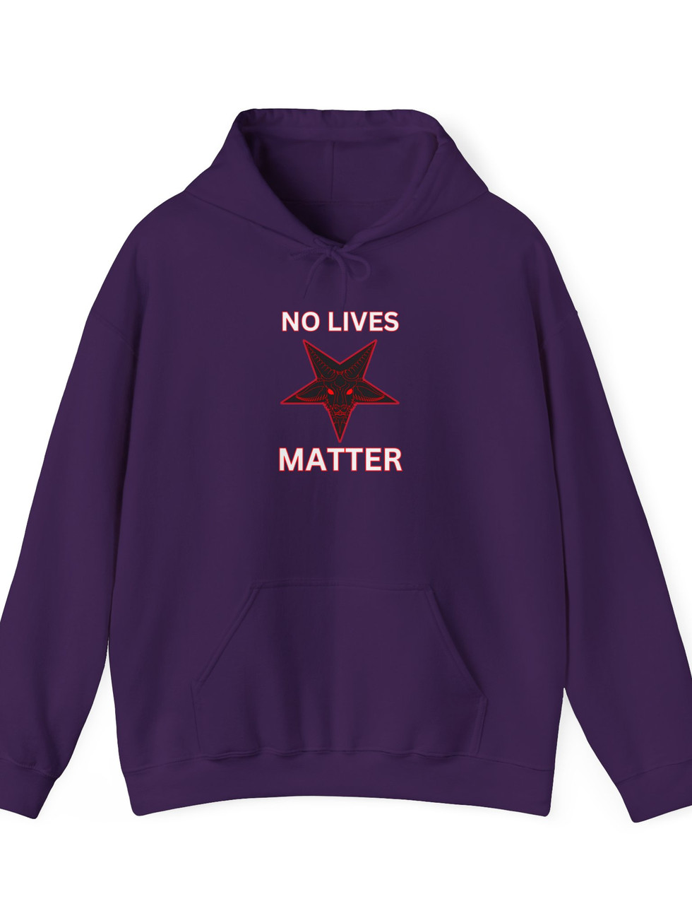 A bold, inverted pentagram sits front and center with the raw, unapologetic text NO LIVES MATTER blazing across the chest, turning the ultimate anti-political statement into wearable dark chaos.