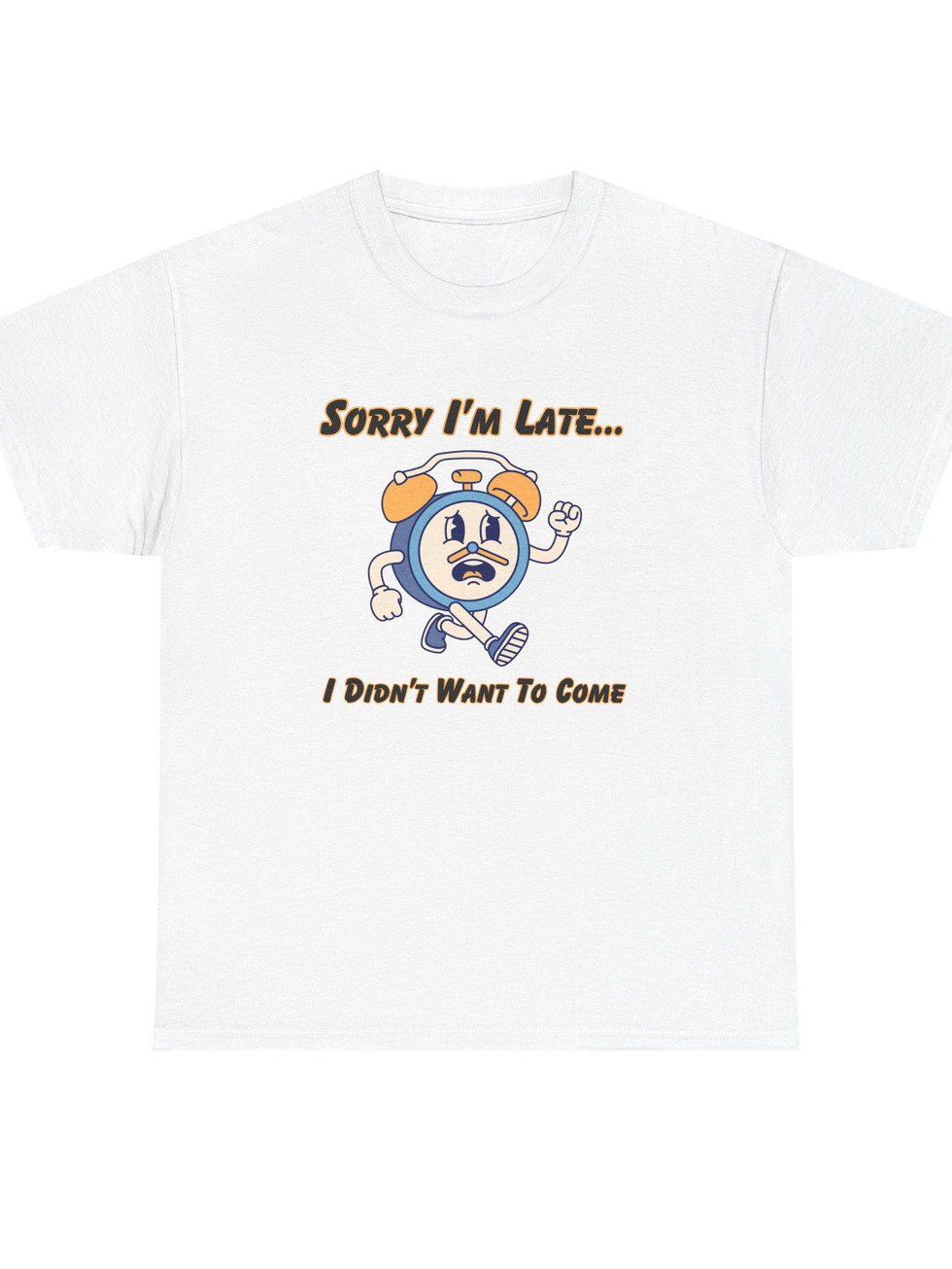 A cute clock and big, blunt text across the chest proudly announces SORRY I'M LATE, I DIDN'T WANT TO COME! The unofficial anthem for introverts, professional ghosters, and anyone who treats RSVPs like gentle suggestions.